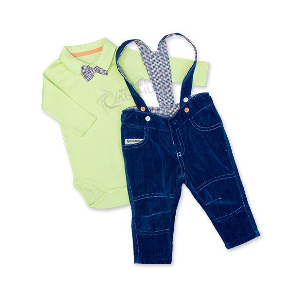 - Комплекта се състои от две части, боди и джинси с тиранти