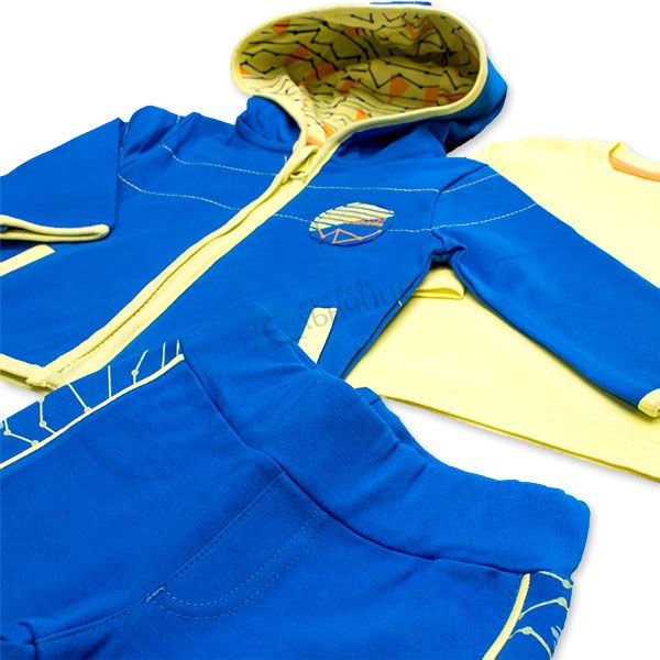 - Комплект от три части създаден от висококачествени материали за комфорта на малкото дете.