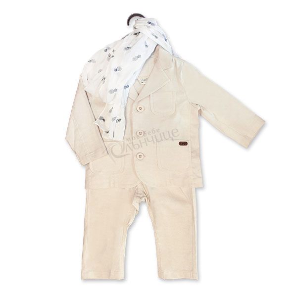 - Комплект за момче от три части изработен от висококачествени материали - лен и памук.