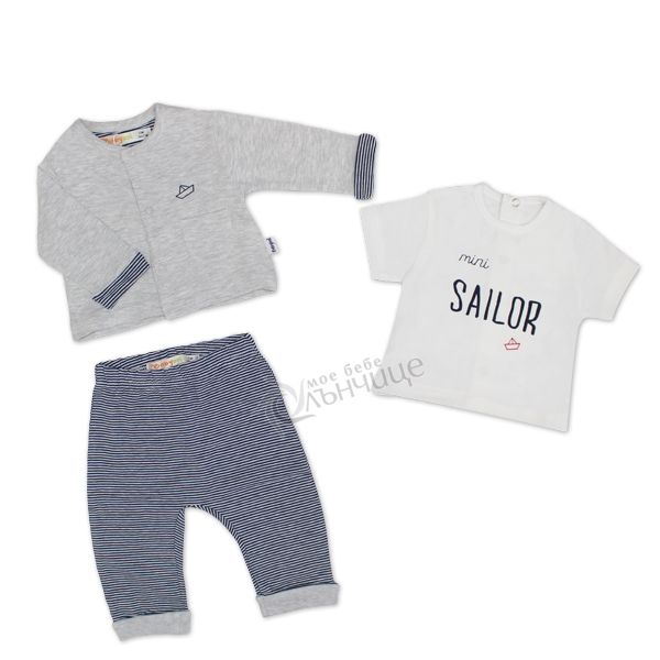 - Комплект, състоящ се от три части - жилетка, блузка и панталонче.