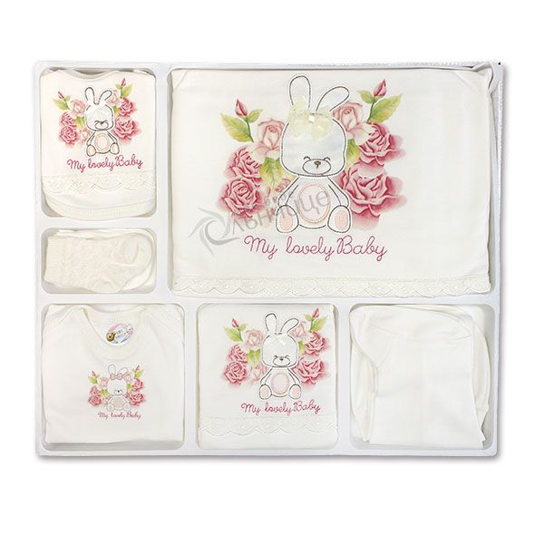 - Предлага се със страхотна декорация - зайче и рози в цветове бял и светло розов. Отличен избор за малкото момиче.