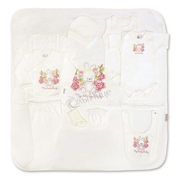 - Фантастичен комплект за изписване на новородено изработен от 100% памук.