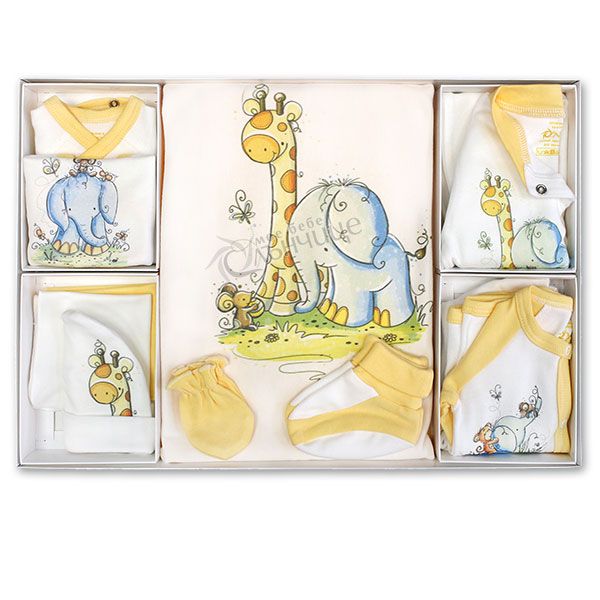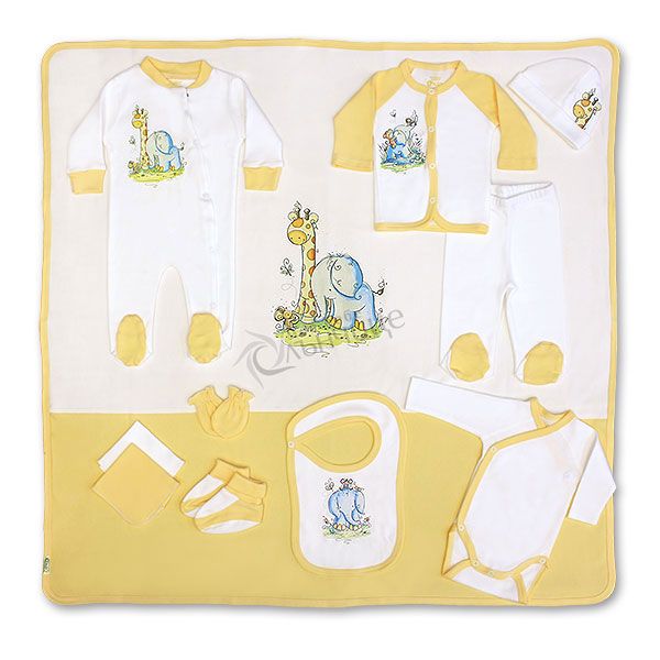 - Материята е памучно трико (интерлог), изключително комфортна и подходяща за пролетно-летния сезон. Комплекта съдържа всичко необходимо, за да посрещнете спокойни новороденото бебе.