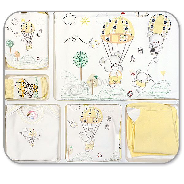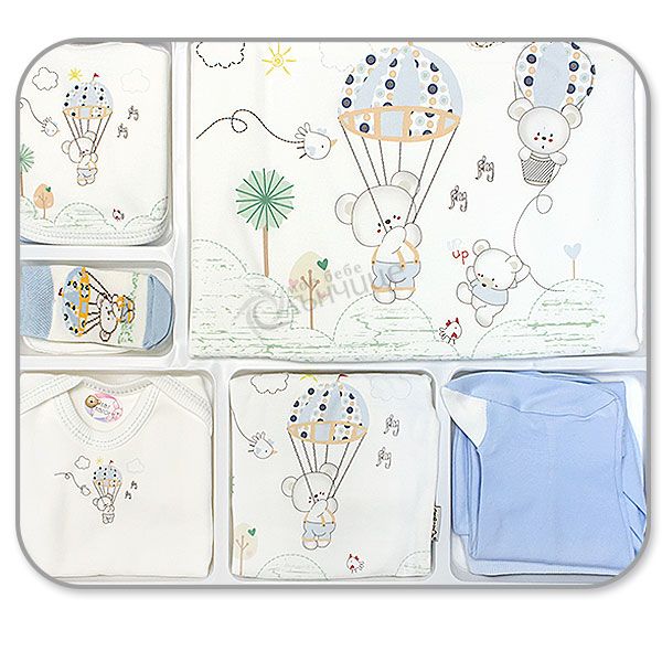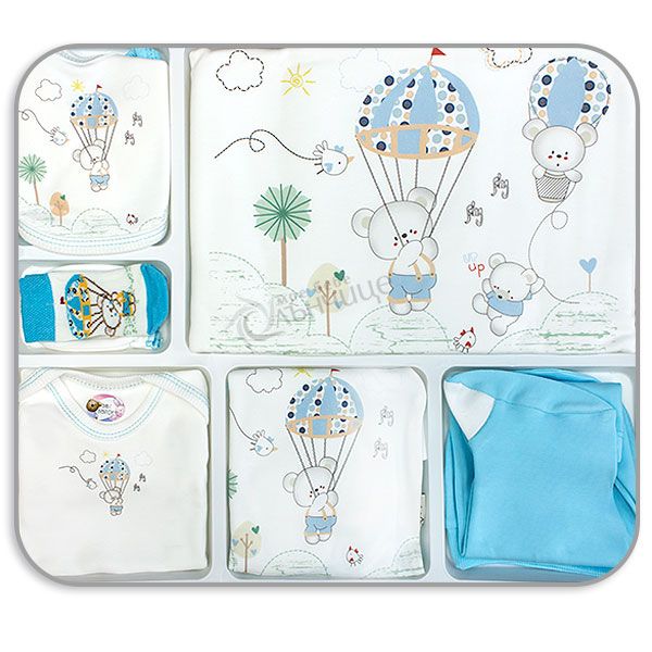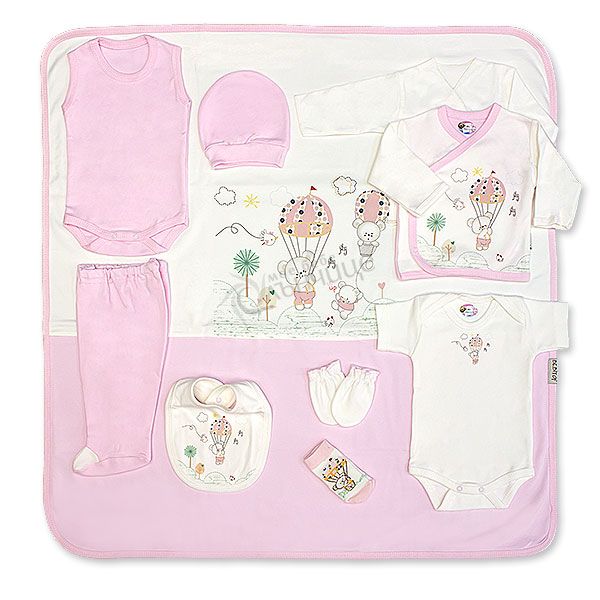 - Комплект за изписване на новородено създаден от нежна 100% памучна материя.