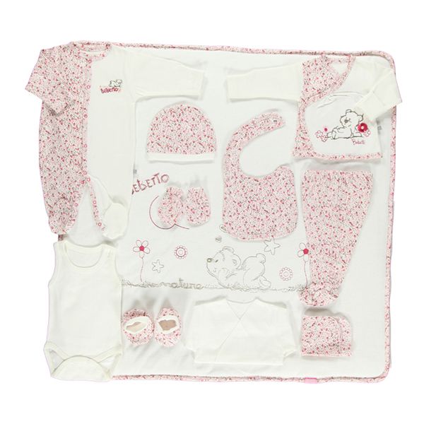 Бебешки комплект за изписване от 12 части изработен от висококачествени материали. Изключително нежни и деликатни цветове с впечатляващ дизайн.