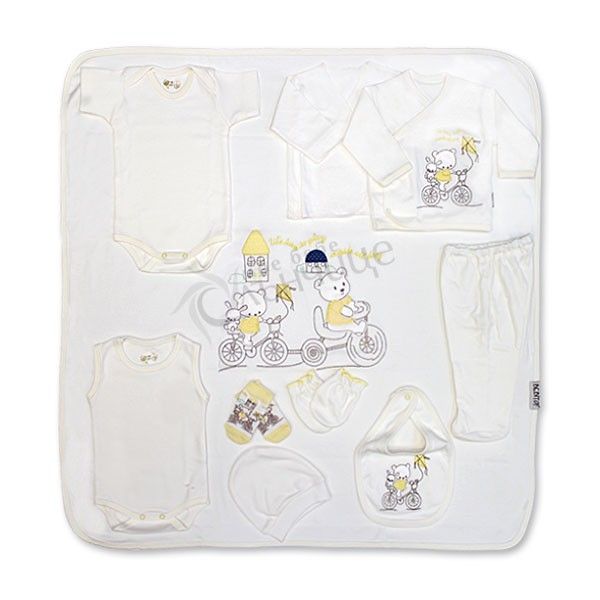 - Комплект за изписване на новородено от висококачествени и нежни материали, създаден от 100% памук.