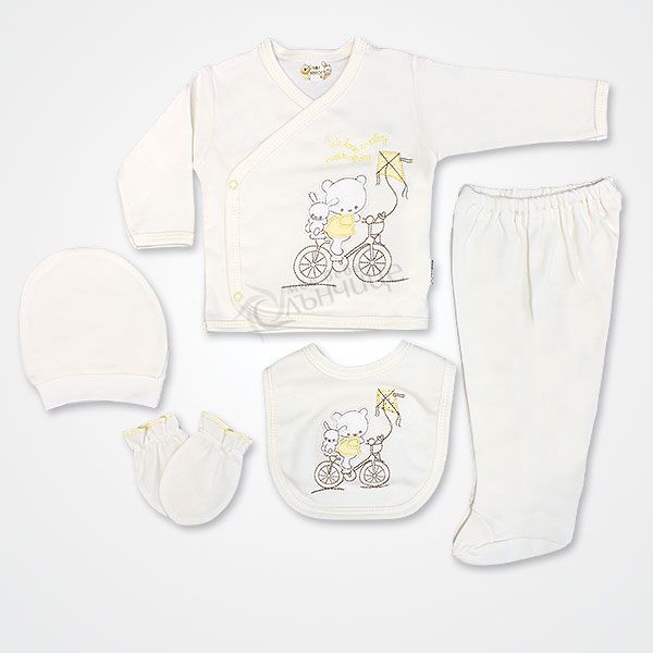 - Комплект за изписване включващ пет части изработен единствено от 100% памук.