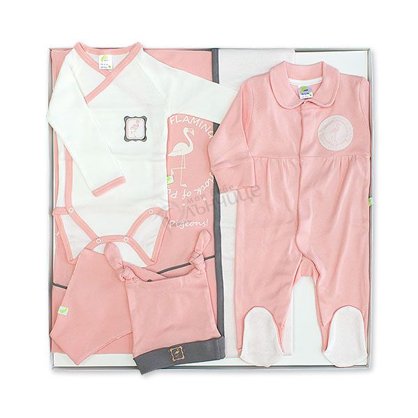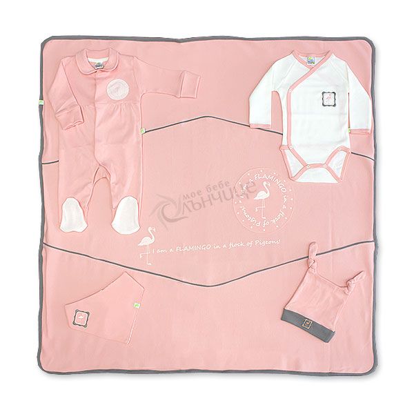 - Предлага се в изключително нежен розов цвят със страхотна декорация с фламинго.