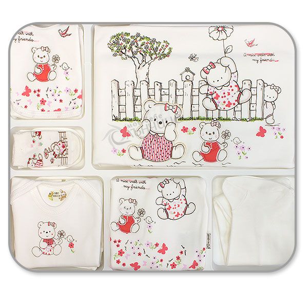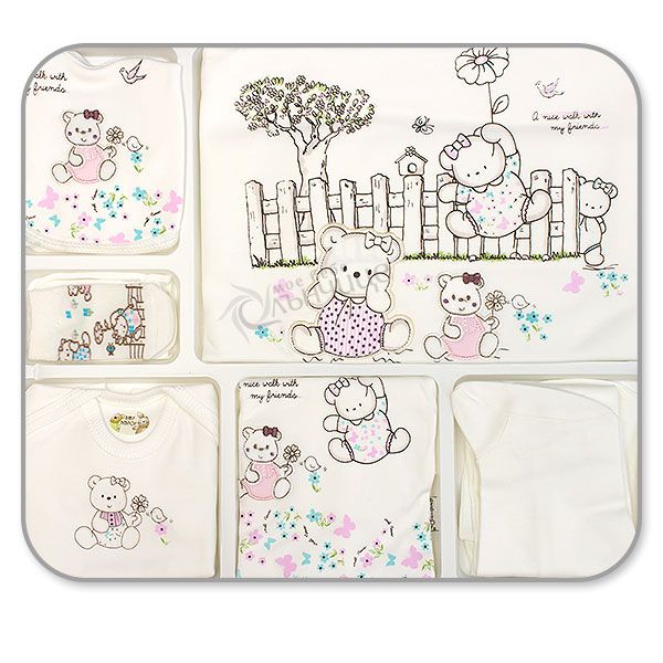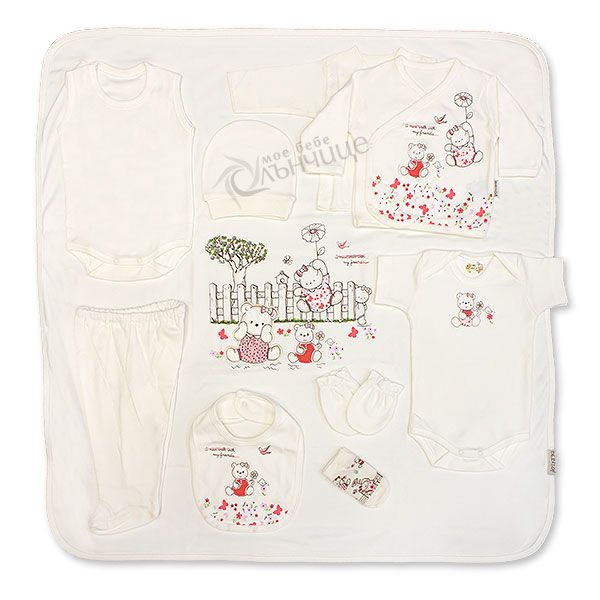 - Комплект за изписване на новородено в изключително чаровен дизайн от 100% памучна тъкан.