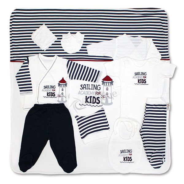 - Комплект за изписване на новородено включващ 10 части изработени от първокачествен памук.