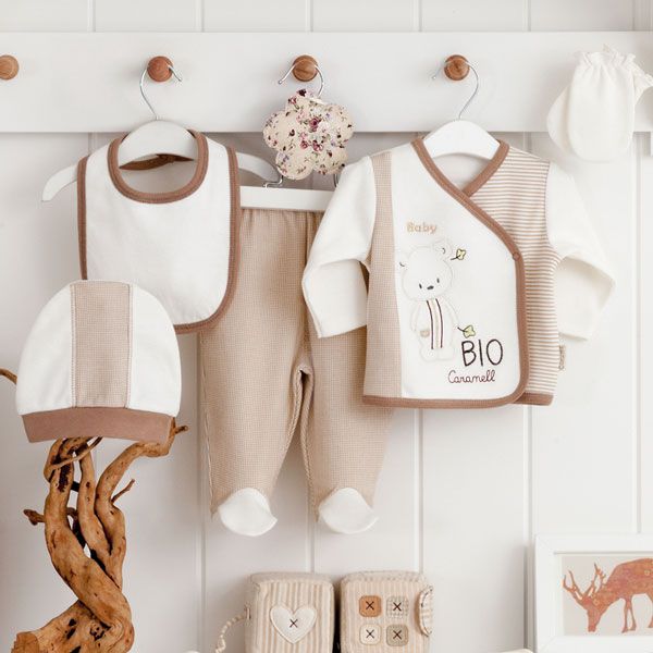 - Доверете се на органичният памук. Отгледан в екологично чисти региони, без хербициди, пестициди, инсектициди и други вредни химикали, органичният памук е 100% нежност от природата. Доверявайки се на Caramell ORGANIK ще елиминирате риска от контакт с десетките алергени, които застрашават нашето здраве в последните десетилетия. При процеса на преработка на органичният памук Caramell също не се използват химикали и вредни вещества. Добивът е ръчен и, тъй като тъканите не са третирани с химически препарати, нишките на органичният памук са по-здрави и плътни. Естественият начин за отглеждане на органичният памук запазва еко равновесието, което способства за естественото възобновяване на планетата и гарантира нейното плодородие. Комплект за изписване от органичен памук Caramell е създаден с много любов и грижа към новороденото. Дизайна е фин и семпъл, така че да задоволи и най-изискания вкус. Всички детайли са съобразени с нежната бебешка кожа. Производителя се е погрижил за това всички етикети и ластици да са външни.