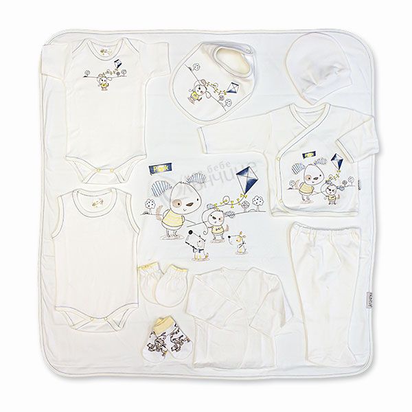 - Сладък комплект за изписване на новородено изработен от 100% памук.