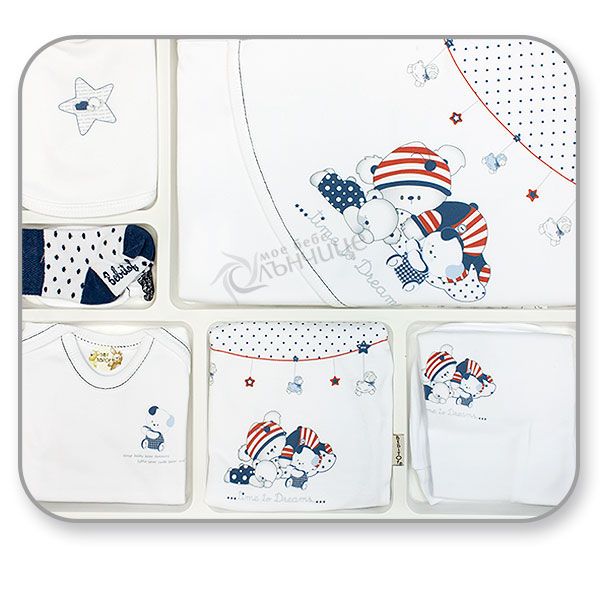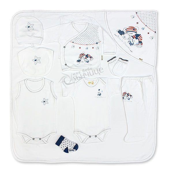 - Фантастичен комплект за изписване на новородено изработен от 100% памук.
