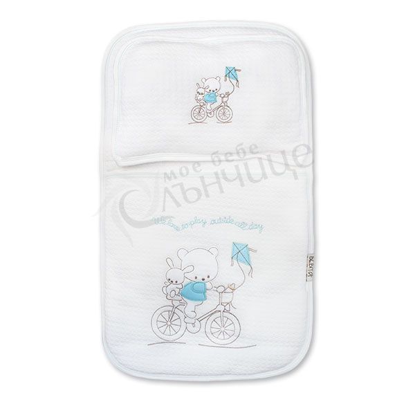 - Комплект за количка от две части изработен от качествен памучен материал.