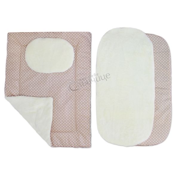 - Вътрешната част на завивката, възглавничката и чаршафчето Soft touch са изработени от мекa кохавлия, а памучното чаршафче и лицето на възглавничката и завивката от 100% памучен ранфорс.