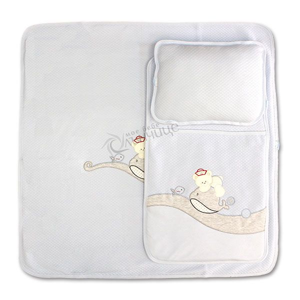 - Комплект за количка от три части, включващ уютна торба тип порт, мека пелена и възглавница.