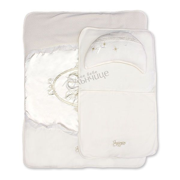 - Включва ватирана пелена, топла торба тип порт и мека възглавница.