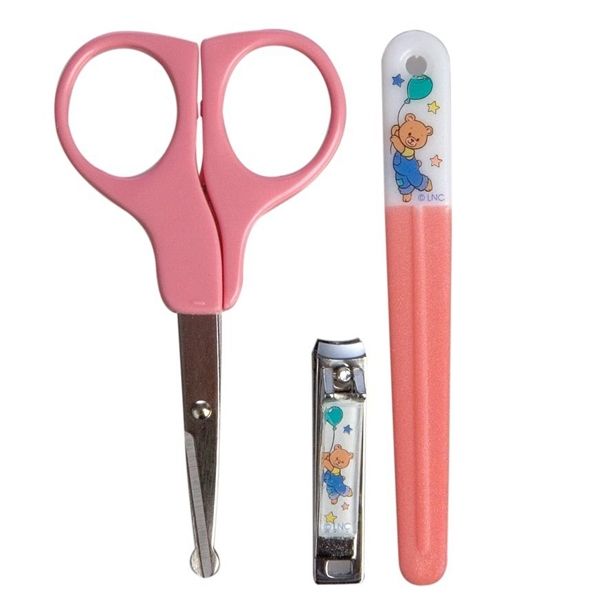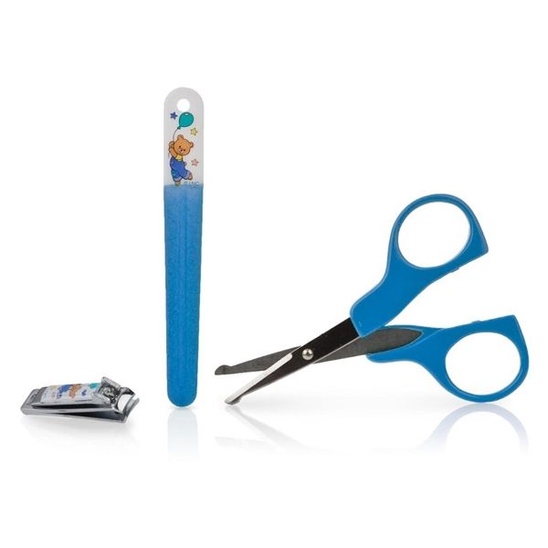 - Комплектът за маникюр на Nuby съдържа три части - ножичка със заоблени върхове, малка нокторезачка и пластмасова пила за новородени.