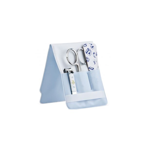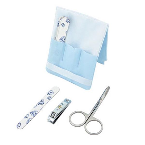 - В този комплект са включени всички инструменти, необходими за грижата за бебешките нокти. С нокторезачката лесно се захваща миниатюрния нокът. Ножиците със заоблени върхове за безопасност, прилягат по естествената форма на нокътя. Пилите са предназначени да не остават вдлъбнатини.