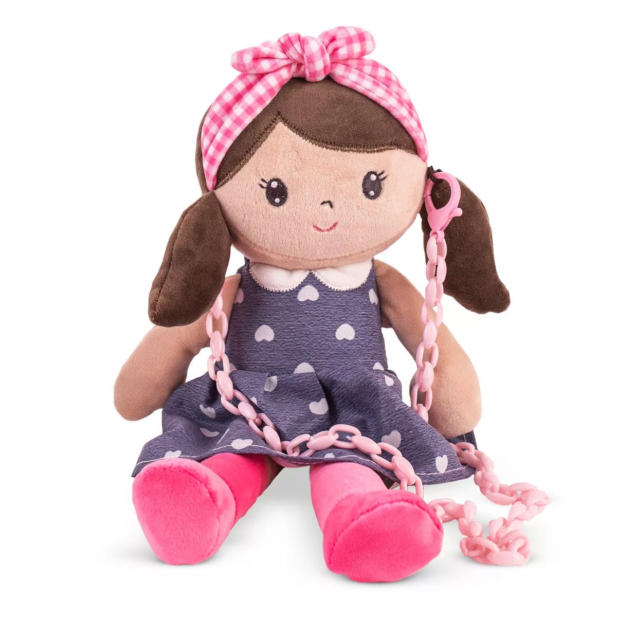 - Куклата има меки и нежни черти, изработена е от материали, приятни на допир, а дръжката осигурява удобно носене.