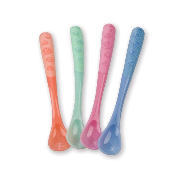 - Докато мекият край на лъжичката предпазва деликатните венци и новите зъбки на бебето, той променя цвета си, когато храната е много топла (около 43.3 C и нагоре).