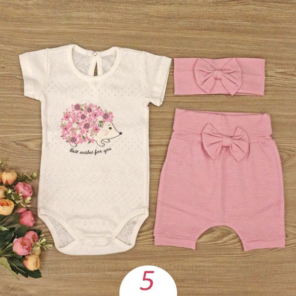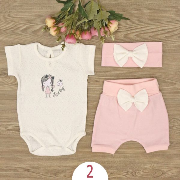 - Мек и комфортен летен комплект от 3 части, подходящ за летния сезон, състоящ се от: