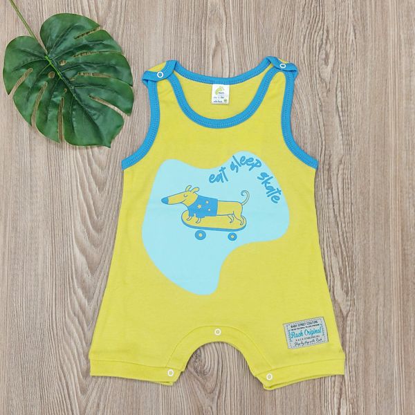 - Летен бебешки гащеризон с къси ръкави и крачолчета.