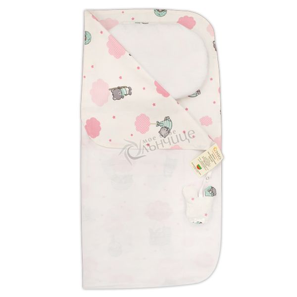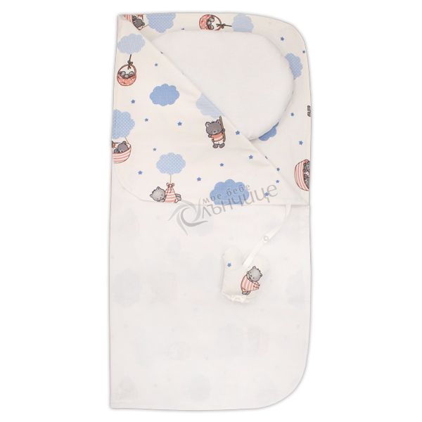 - Комплектът се състои от възглавница, чаршаф с ластик (за матрачето), пелена и сладка играчка, с която Вашето бебе може да си играе. Много подходящ за топлите дни.