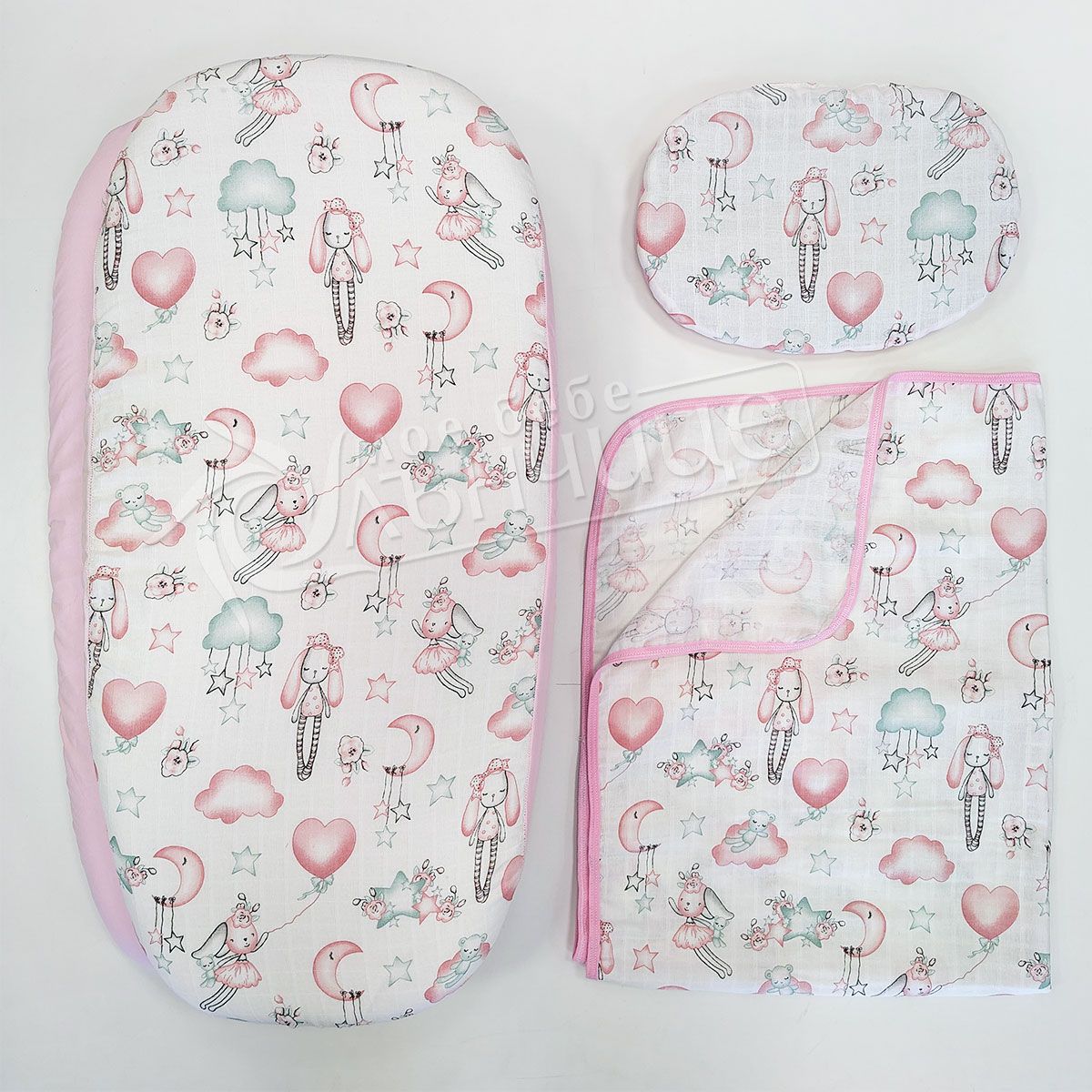 - 2 броя чаршаф с ластик - 78/38см (1 муселин и 1 ранфорс)