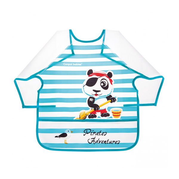 - Изработен с дълги ръкави, предпазващ детето изцапване по време на хранене или игра.