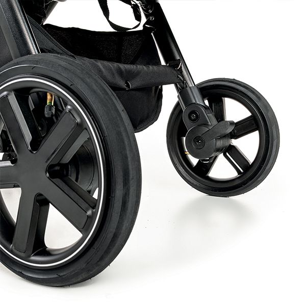 - Колелата са с двойно лагерно окачване и метални оси, с помпащи гуми за меко возене по всякакви повърхности.