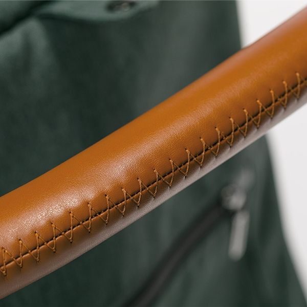 - Дръжката на количката е с пришита еко кожа и може да се регулира във височина.