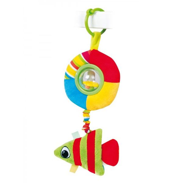 - Играчката е снабдена с шумящи и дрънкащи елементи.