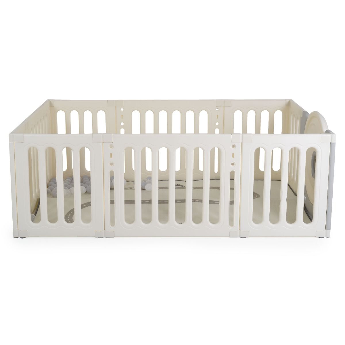 - Комплектът включва меко XPE килимче с дебелина 1 см, което прави пространството удобно и приятно за пълзене.