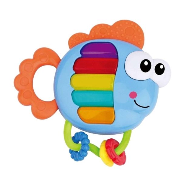 - Весела музикална играчка под формата на разноцветна рибка с клавиши наподобяващи пиано.