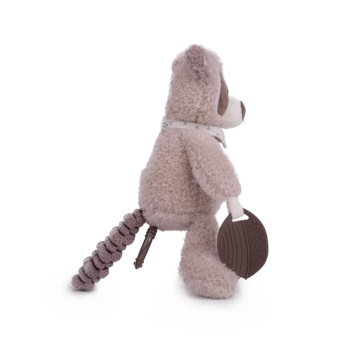 - В едната ръчичка на ракуна е прикрепена силиконова гризалка, създадена да облекчава венците при никнене на зъбките.