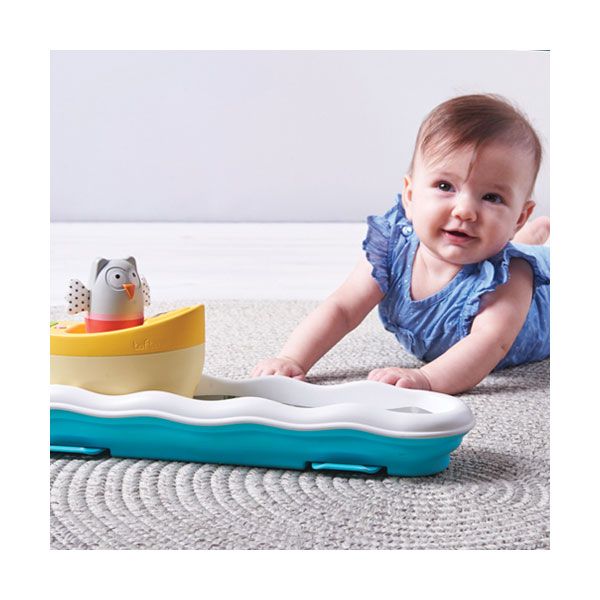 - Музикална играчка за 3 различни етапа на развитие. При първия 0м+ може да се ползва като музикална играчка за леглото. При втория 3м+ формата на лодка помага го стимулира при първите опити за лазене. При третия 6м+ детето вече следва само движенията на играчката.