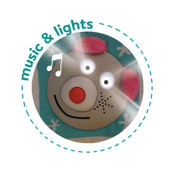 - Меките тъкани, 3D форми, светлини и звуци я правят уникална. Стимулира сетивното възприятие и двигателните умения, като в същото време създава истинско забавление.