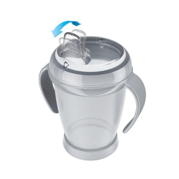 - Чаша с мек силиконов накрайник, който спомага за прехода от шише към чаша.