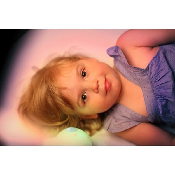 - Бебешка нощна лампа, която излъчва мека и успокояваща светлина в различни цветове.