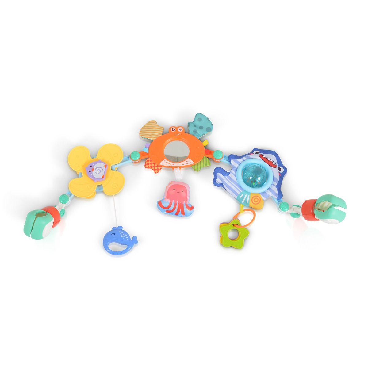 - Насърчава развитието на фините двигателни умения, развива вниманието, зрението, цветоусещането, насърчава развитието на хватателни рефлекси и тактилно възприятие. за количка, кошара или кошара.