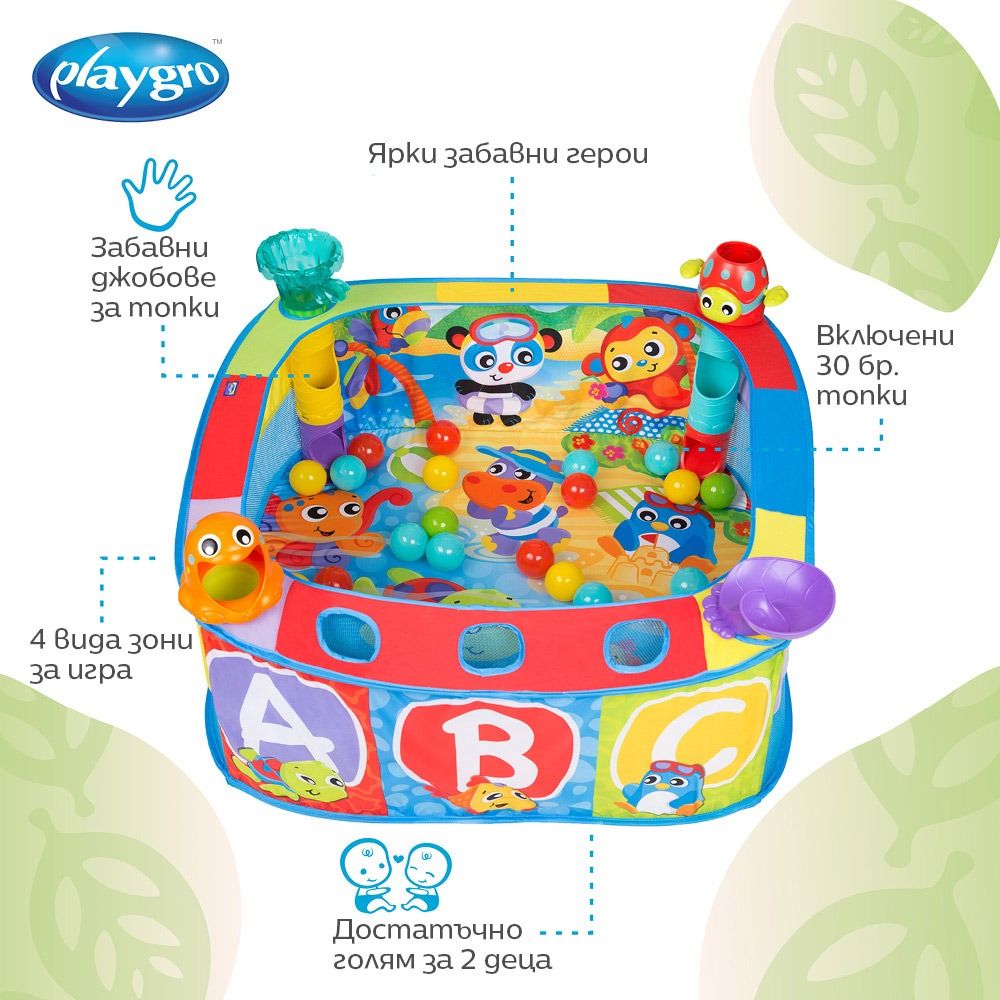 Бебешка активна гимнастика сух басейн с включени 30 цветни топки, 6м+ - Playgro