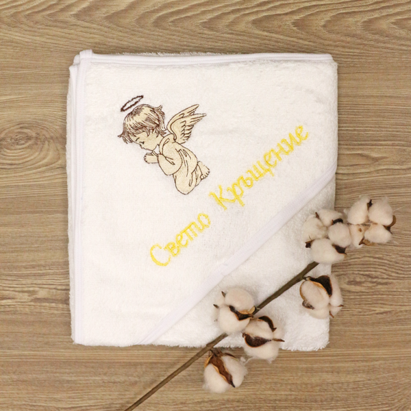- Хавлията има пришита качулка, на която има красива бродерия на ангелче и надпис "Свето Кръщение"