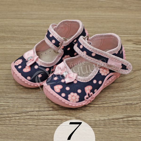 - Детски пантофи, изработени от текстил. Подходящи са за момиче. Оигуряват комфорт и стабилност на детското краче.