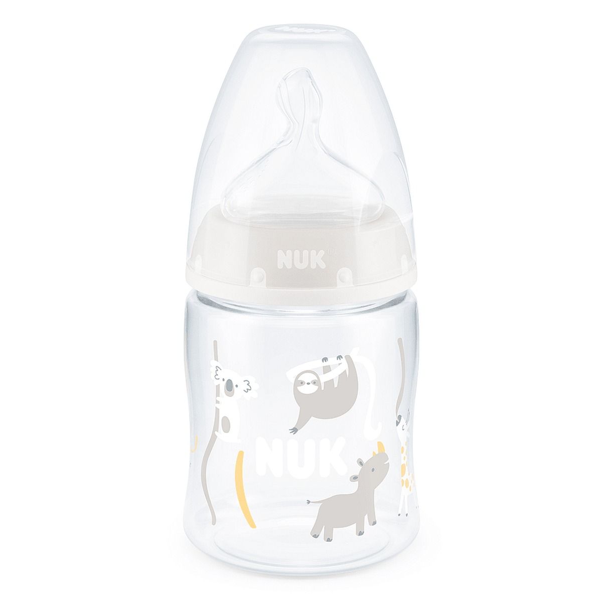 Бебешко шише със силиконов биберон First Choice 150 мл. Temperature Control 0-6 м. Beige - NUK