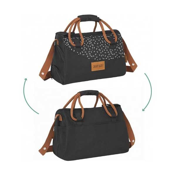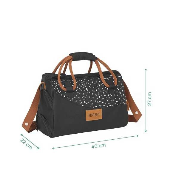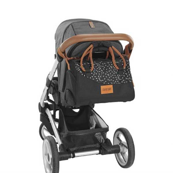 - Разполага с много джобчета, дръжки за захващане към рамата на количката, дълга дръжка за носене през рамо и къси дръжки за носене в ръка.