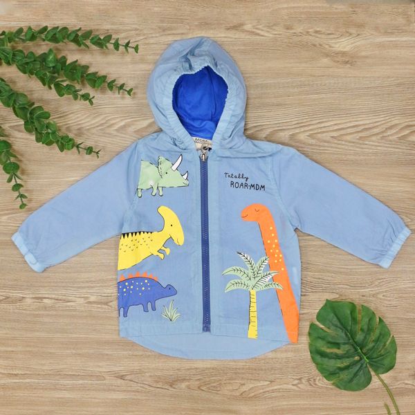 - Детско пролетно яке, снабдено с качулка с ластик.