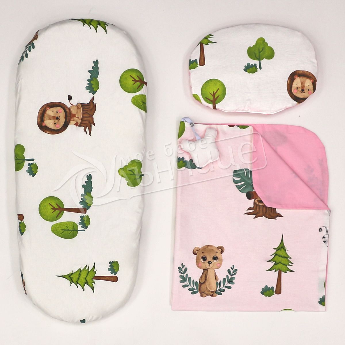 - Комплектът Nature се състои от четири части: възглавница, чаршаф с ластик (за матрачето), пелена и сладка играчка, с която Вашето бебе може да си играе.