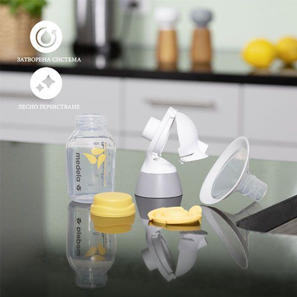 - Всички части могат да се почистват в съдомиялна машина или в сапунена вода и да се стерилизират във вряща вода, парен стерилизатор или в пликчетата за микровълнова фурна Medela Quik Clean.