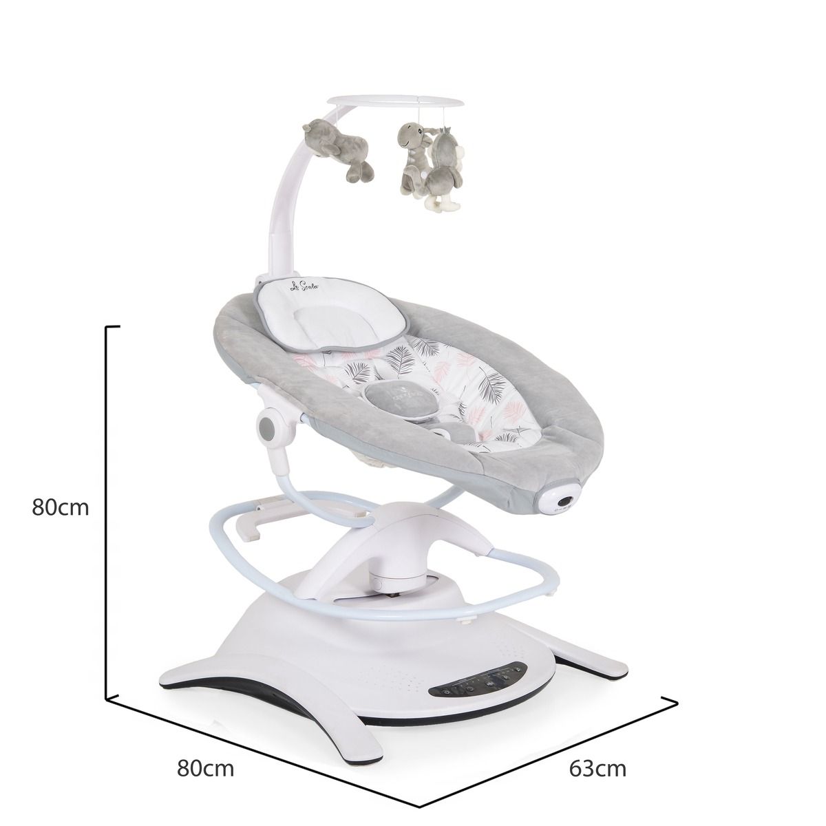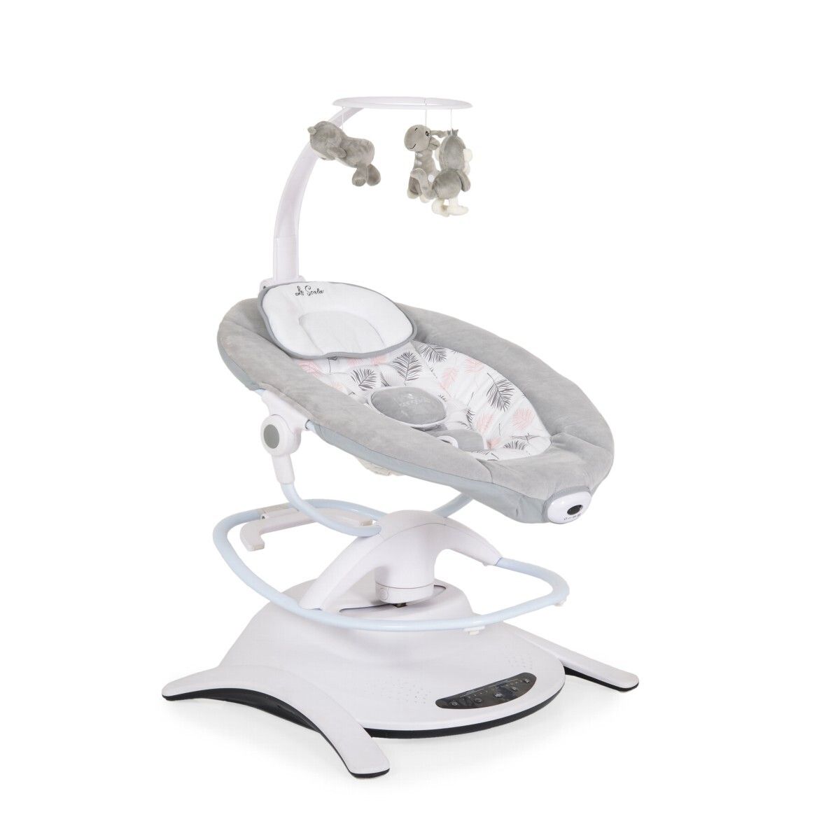 - Люлката предлага и вибрираща функция с три различни степени, които помагат за допълнителното успокояване на бебето. Седалката може да се върти на 360 градуса, което улеснява родителите да променят позицията на детето без да го преместят, а петте различни степени на скоростта на люлеене осигуряват перфектното темпо за всяко настроение.